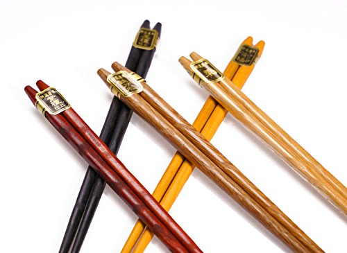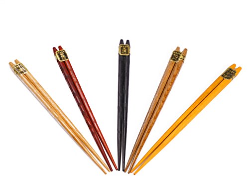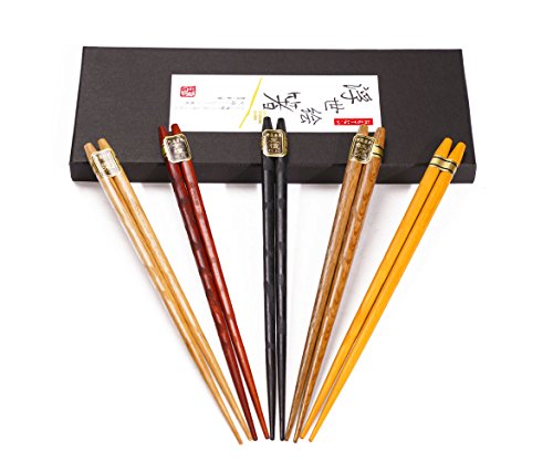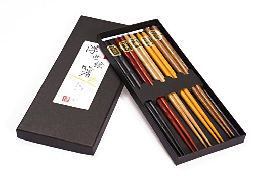 LNE Luxury Natural Wooden Chopsticks Unique Multicolored Multicultural Ancient Asian Wisdom Reusable Classic Style 5-piece Gift Set