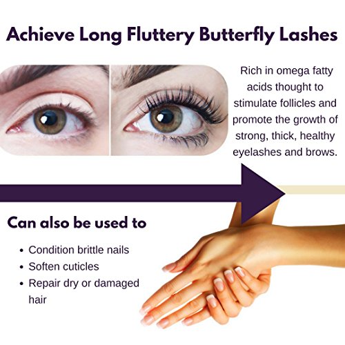 Essential nutrients such as omega 6 & omega 9 fatty acids naturally condition & stimulate eyelash growth; resulting in long, thick, healthy lashes and brows; serum can also be used to condition skin, nails and cuticles
