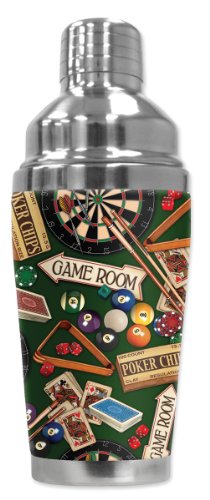 -. Brand : Mugzie -. Color : Multicolor -. Feature : 20 Oz Stainless Steel Cocktail Shaker covered with water-proof, neoprene wetsuit material. No more cold, wet hands when shaking up your favorite cocktail. / Hand-sewn fabric cover is made from 1/4 inch closed-cell neoprene that is covered with soft, water-proof polyester fabric. / Stain-resistant cover is printed in hi-resolution and has full-wrap coverage. Leak and spill proof lid. Non-skid bottom. / Cushioned cover affords a secure grip and eliminates condensation and sweating. Bottom counter-weighted bottom provides stability. / Patented. Truly unique. Over 750 different designs. Made in the USA. FREE SHIPPING. -. Label : Art Plates -. Manufacturer : Art Plates -. Model : 1254-SHAMAX -. MPN : 1254-SHAMAX -. PackageQuantity : 1 -. PartNumber : 1254-SHAMAX -. ProductGroup : Kitchen -. ProductTypeName : KITCHEN -. Publisher : Art Plates -. Studio : Art Plates -. Title : Mugzie brand 20 Ounce Cocktail Shaker with Insulated Wetsuit Cover - Game Room