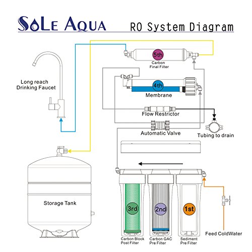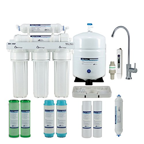 Sole Aqua 5 Stage Home Drinking Under Counter Reverse Osmosis Filtrating System 50 GPD Water Purifier with Faucet, Extra 7 Replacement Filters, TDS Meter, Pressure Regulator & Leak Detector (RO-102)