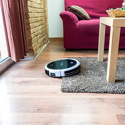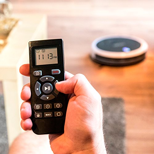 Hohe Autonomie mit mehr als 2Stunden (130-160min) passt in Ihr Zuhause: reinigt unter die Mobel, erkennt Hindernisse und fallt nicht von Treppenrandern etc. Fernbedienung mit LCD Bildschirm: Maximale Komfort enthalten 1Tank trocken grosse Kapazitat erreicht alle Ecken: inklusive 4optionalen Seitenleisten: Staubbehalter feucht, lauft der Mopaufsatz und wischen des Bodens.