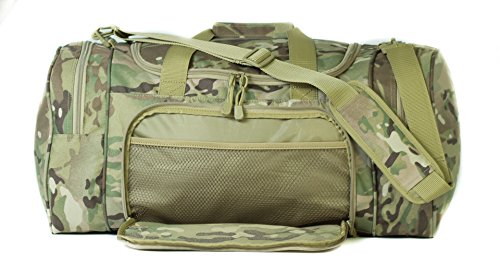 -. Feature : 600 Denier Vinyl backed Polyester construction / Large main compartment with two end zippered pockets / Front zippered pocket with mesh organizer pocket inside / Detachable and Padded Shoulder Strap / Two carry Handles
