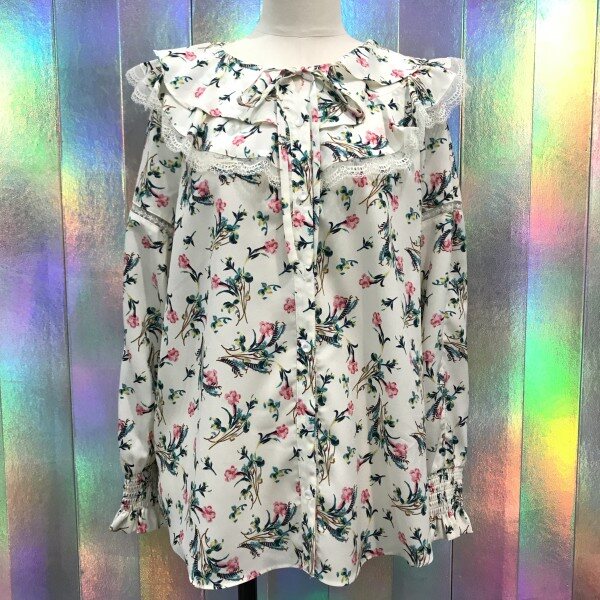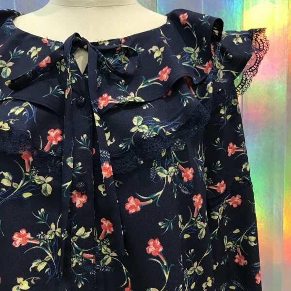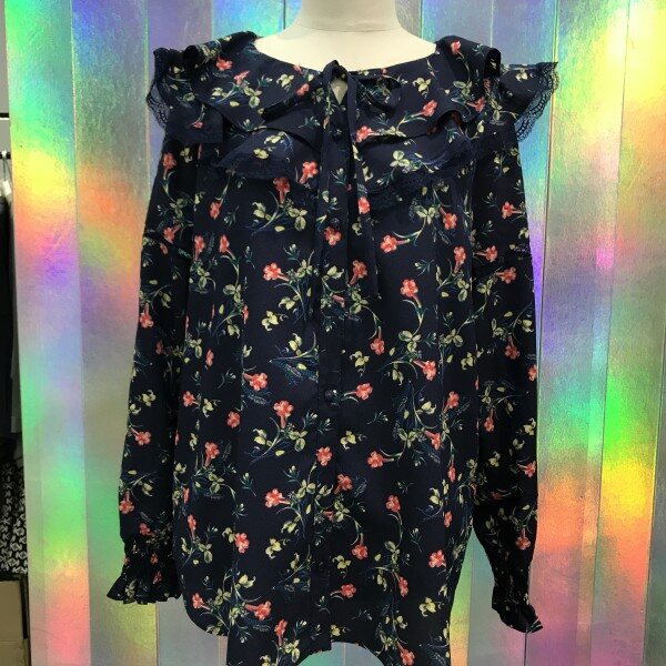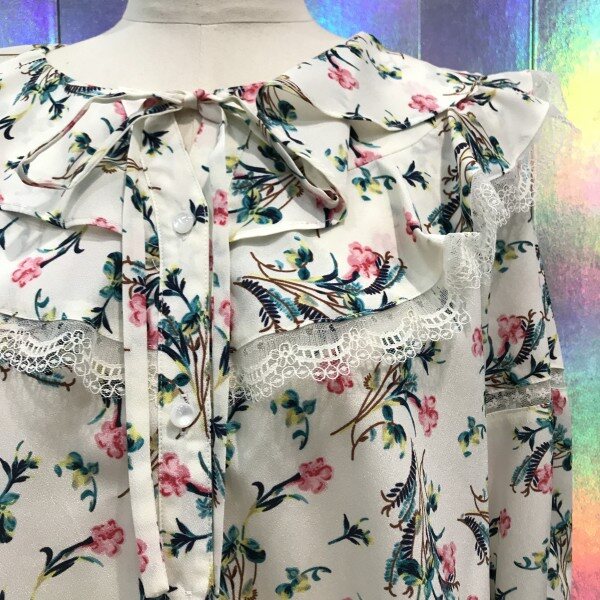 레이스프릴이 여성스러움을 더해주는쉬폰 블라우스입니다