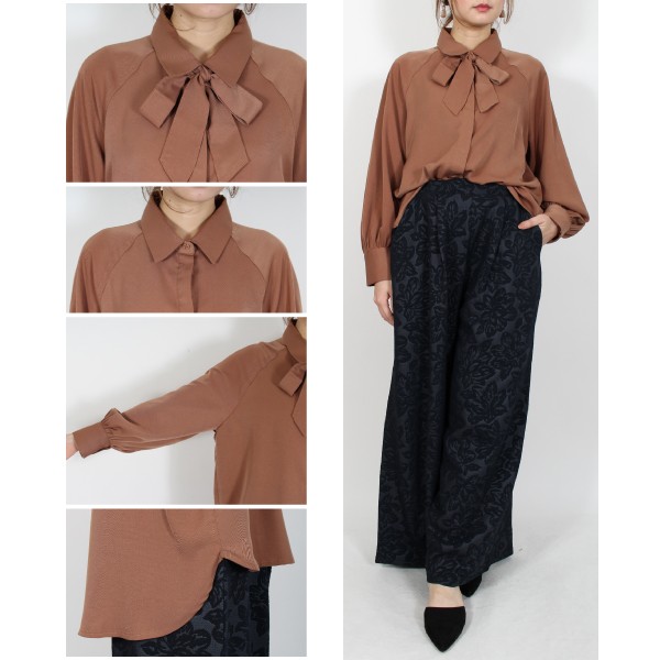 これからの季節にピッタリなカラー展開で、キレイめにもカジュアルにも着こなせるトレンドブラウスです