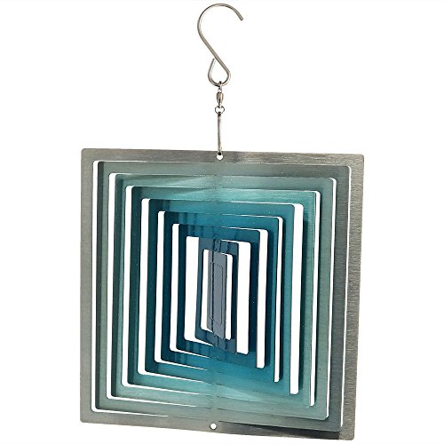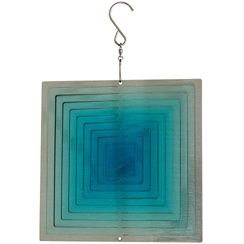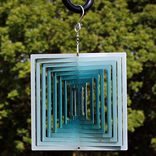 Sunnydaze 3D Square Blue Ice Wind Spinner with Hook, 6 Inch