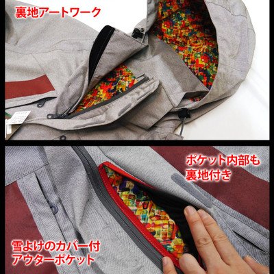 스노보드 웨어쟈켓 7OVE PLAYDESIGN P01 LOVE JK color:ASH GRAY 2007년에 탄생 했다, 이 세상에서 가장 중요한『LOVE = 사랑하는 것』 PLAYDESIGN이 공감하는 아티스트Ephka(EFF 카)의 사랑을 테마라고 한 작품을 「몸에 입는다」「안쪽에서 느낀다」모아 두게 굳이 안감에 아트 워크 아이템.표원단에는 TORAY ENTRANT G2방수투 습소재를 사용하고, 풀 seam 테이프 가공 일본제. 7OVE(러브)의 우 맨즈 라인. Outer [TORAY ENTRANT G2] or [SEIREN TECHNOBRANE 2wayST]고, Liner에는 PLAYDESIGN에 친교가 깊은 아티스트Ephka에 의한다「THE DRUGS DON''T WORK 」 와 제목 한 러브그래픽를디자인.떼내어 가능한 파우더 가이드 드로(draw) 코드 후드 떼내어 가능 이너 포켓 이너 패스 케이스 ventilation 리스트 가이아《―타》 ROREX EntrantGII(토레(Toray Industries) entrantGII).방수성:10000mmH2O(98kPa)이상투 습성:6000g/m224hrs.이상 :7000g/m224hrs.이상 발수성:3급(80점)이상(20회 세탁 후) ※디스플레이등에 의해색에 다소의 차이가 나오는 일이 있습니다.