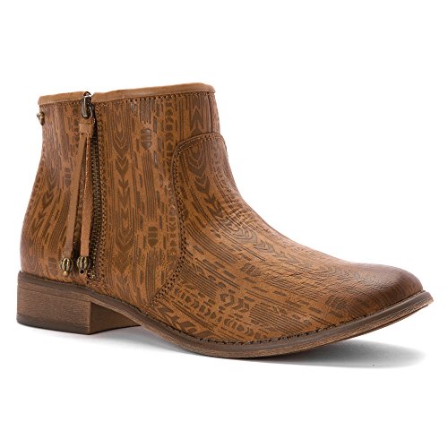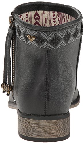 Synthetic upper with emboss and embroidery details, interior zip with beaded pull tab, canvas lined shaft and footbed, Roxy metal lo.
