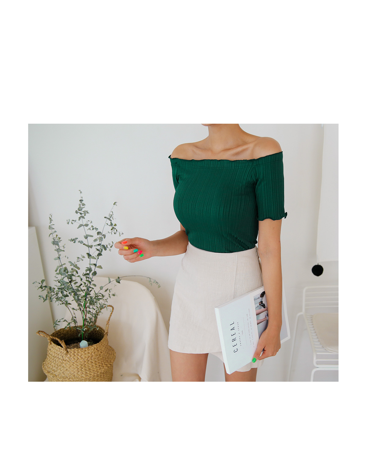 フェミニンなムードを加えてあげることはオフショルダー・ティーシャツ紹介します。