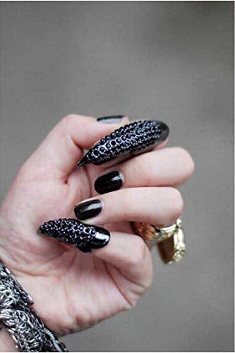 False Nail Punk Style Clear Crystal Claw Paw Talon Finger RING Knuckle Bend Fingertip Finger Claw Ring Set of 5 Pcs (Black)