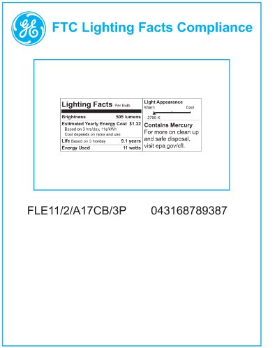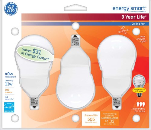 GE Lighting 78938 Energy Smart CFL 11-Watt (40-watt replacement) 505-Lumen A17 Light Bulb with Candelabra Base, 3-Pack