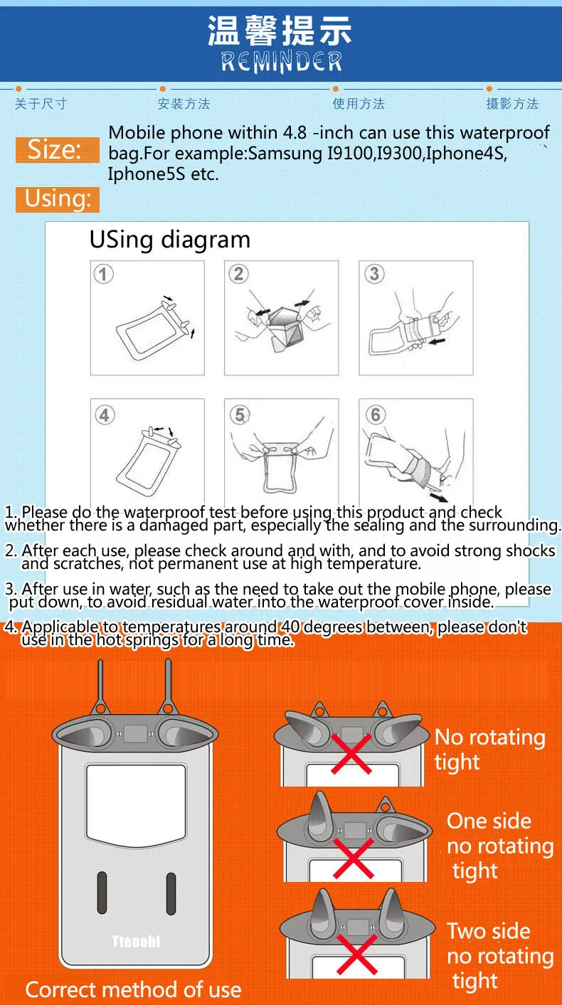 keyword:Mobile phone underwater waterproof dry pouch bags case cover