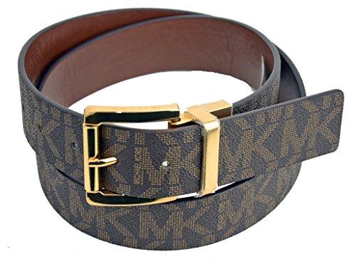 (Michael Kors)/Accessories/Belts Buckles/DIRECT FROM USA/Michael Kors Womens Reversible MK Logo Gold Buckle Brown/Brown MK Logo Belt Large