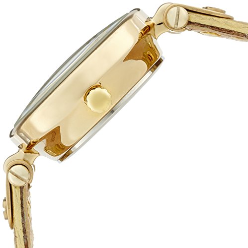 - Feature : Slightly domed mineral crystal; dial with champagne sunray outer zone and gold-tone iridescent leather center; gold-tone hands and markers / Gold-tone iridescent snakeskin patterned leather strap; buckle closure / Japanese-quartz movement / Case Diameter: 26mm / Water resistant to 99 feet