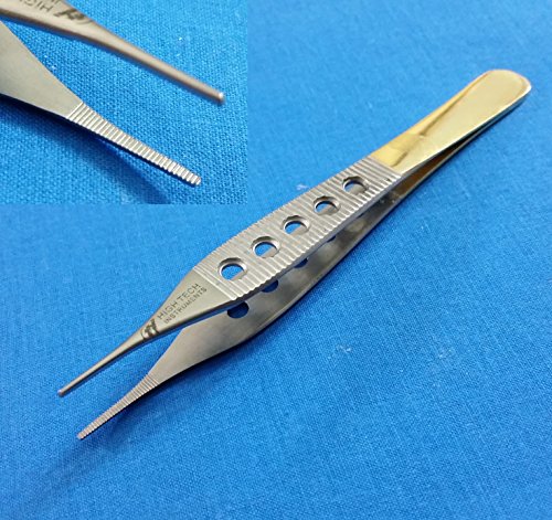 SET OF 2 PREMIUM GRADE ADSON TISSUE 1X2 TEETH + DRESSING SERRATED 4.75" DISSECTING FORCEPS STRAIGHT WITH FENESTRATED GOLD HANDLE ( HTI BRAND)