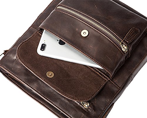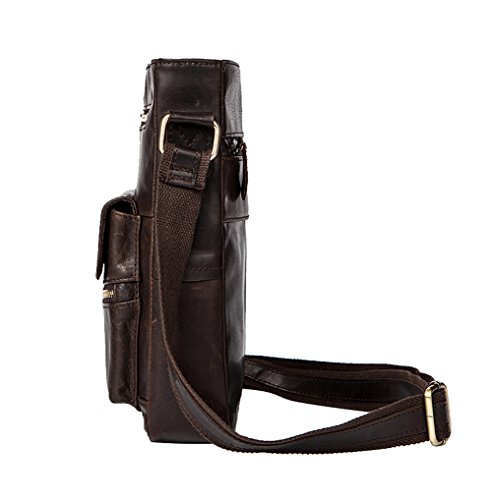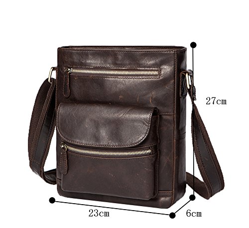 Features: Material: 100% Genuine Leather Size: L23cm×W6.5cm×H27cm (9.0"×2.5"×10.6") Stucture: 1 zipper main pocket, 3 front multifunction pockets and 1 rear zipper pocket Usage: Shoulder crossbody bag, messenger bag, briefcase Flexible,multifunctional,convenient,durable. Used in different occasions, business, school, travel, walking on street, the best choice for hiking, cycling, shopping and so on