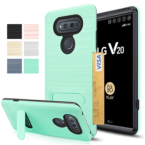 LG V20 Case,AnoKe [Card Slots Holder][Not Wallet] Kickstand Hard Plastic PC TPU Soft Hybrid Shockproof Heavy Duty Protective Holster Stand Case For LG V20 2016 KC1 Mint