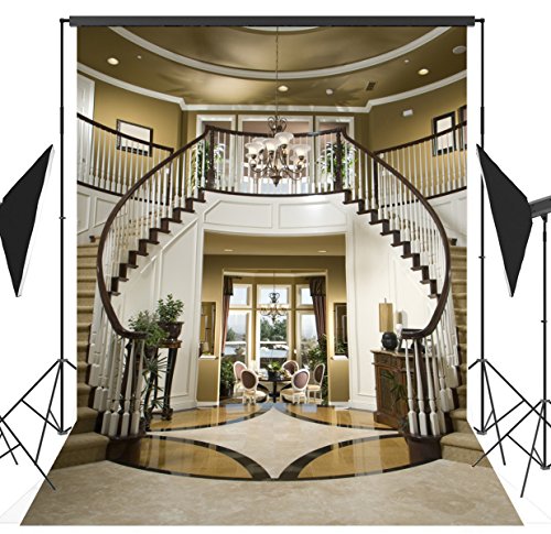 6x9ft Elegant Interior Stairs Seamless Poly Fabric Photo Backdrops Customized Studio Background Studio Props RM-027