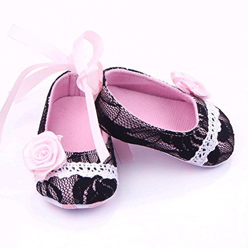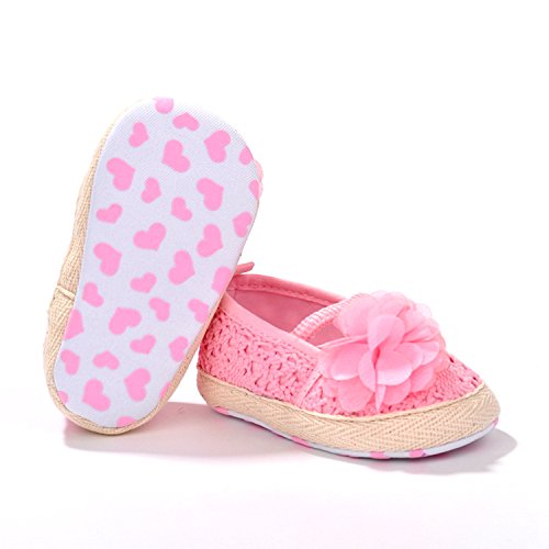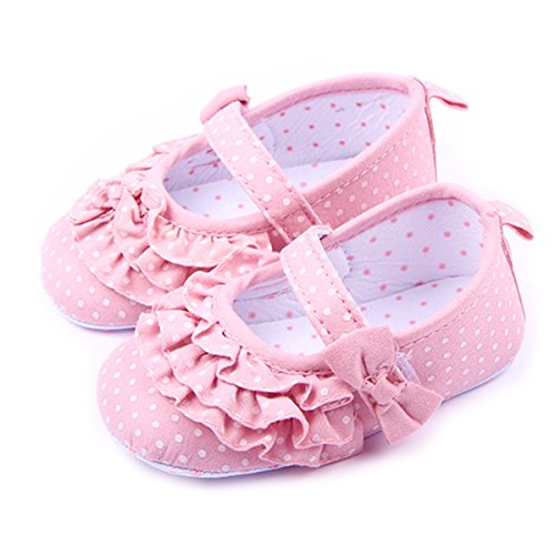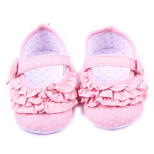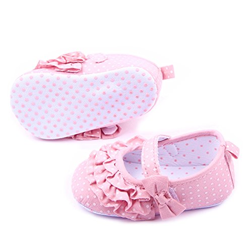 M2cbridge Baby Girl's Bow Dress Shoe Infant Toddler Pre-walker Crib Shoe (6-12 Months, Pink wave lace)