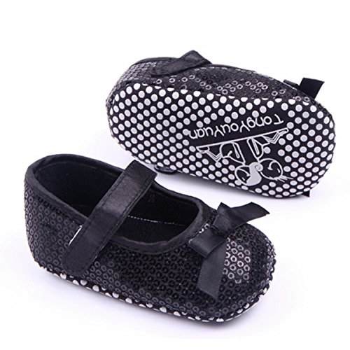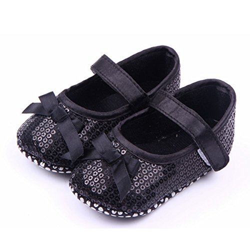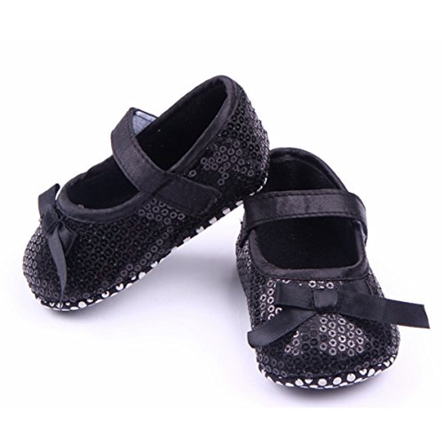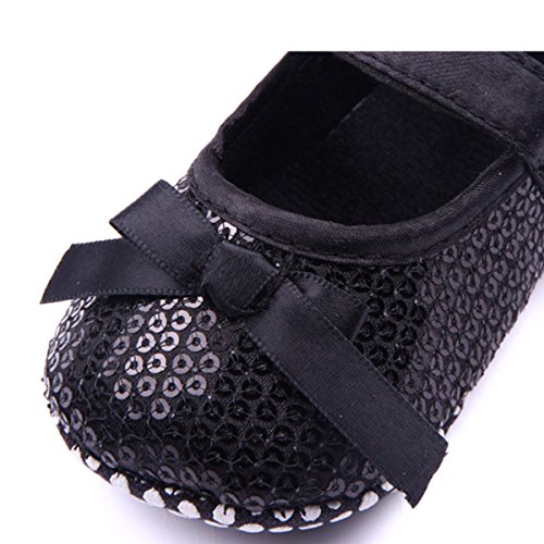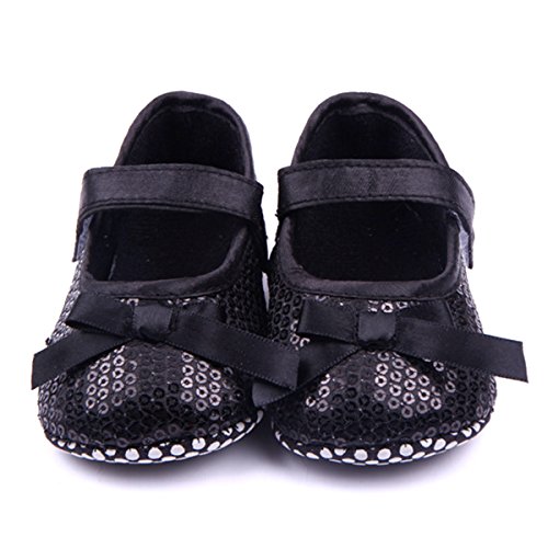 M2cbridge Baby Girl's Bow Dress Shoe Infant Toddler Pre-walker Crib Shoe (6-12 Months, Black Sequins)