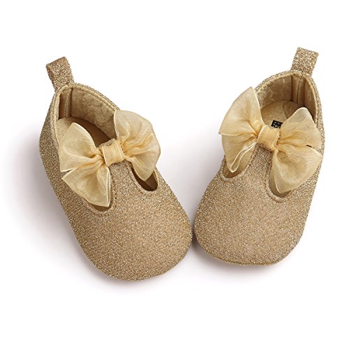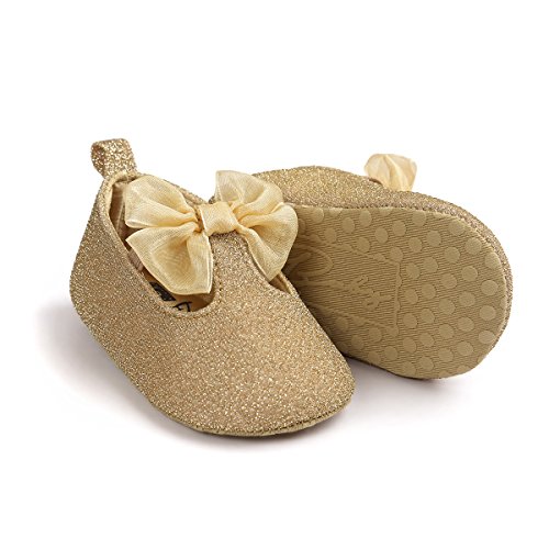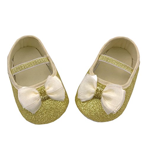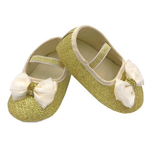M2cbridge Baby Girl's Bow Dress Shoe Infant Toddler Pre-walker Crib Shoe (12-18 Months, Fine Glitter)