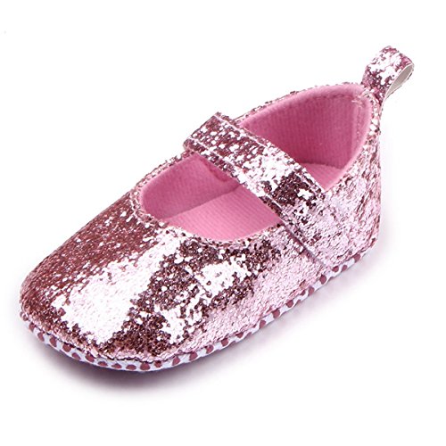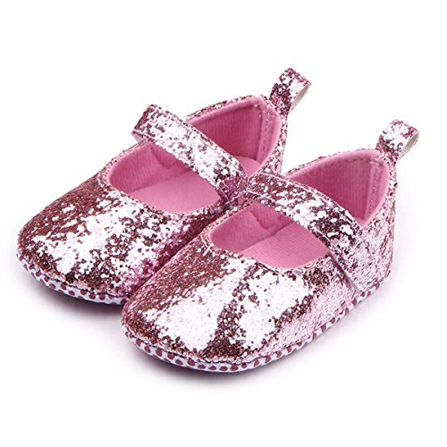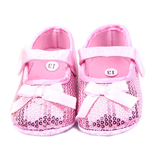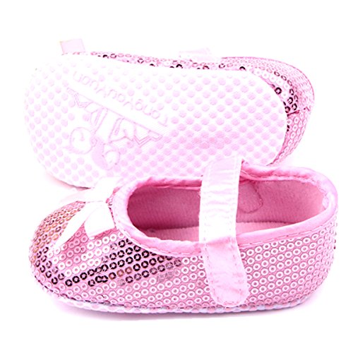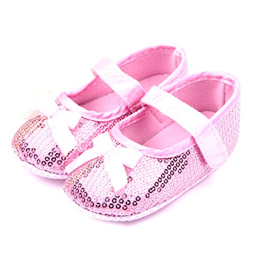 M2cbridge Baby Girl's Bow Dress Shoe Infant Toddler Pre-walker Crib Shoe (0-6 Months, Pink Sequins)