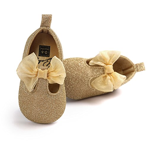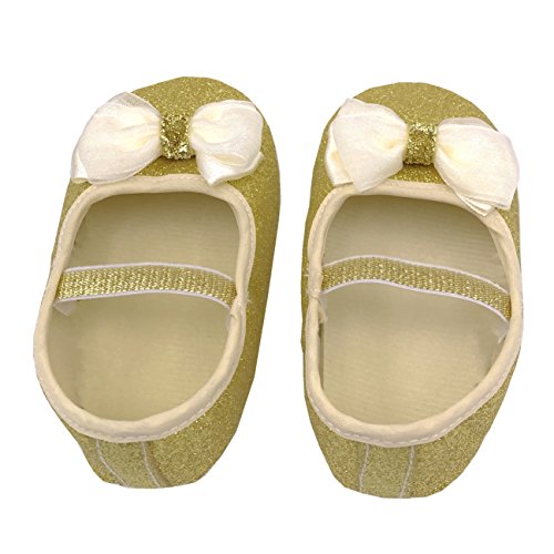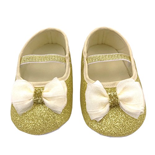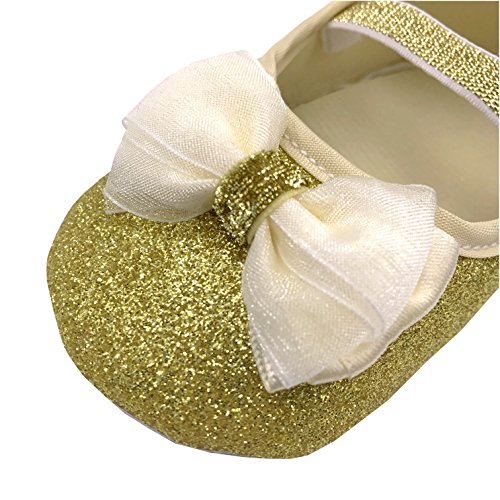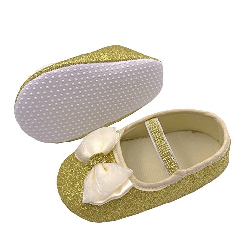 M2cbridge Baby Girl's Bow Dress Shoe Infant Toddler Pre-walker Crib Shoe (6-12 Months, Fine Glitter)