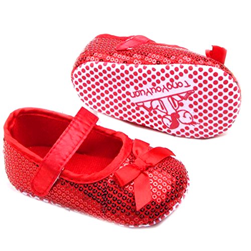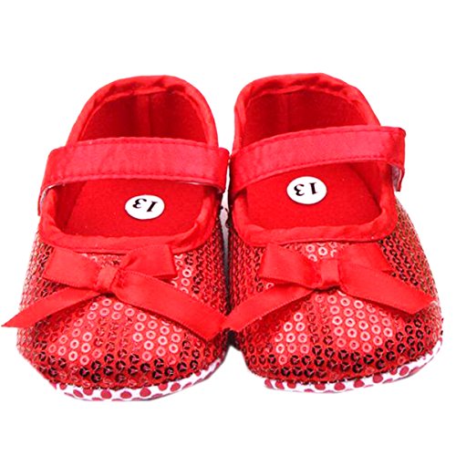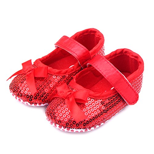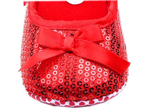 M2cbridge Baby Girl's Bow Dress Shoe Infant Toddler Pre-walker Crib Shoe (6-12 Months, Red sequins)