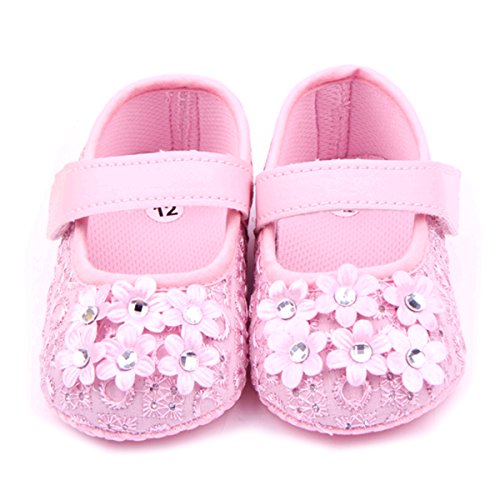 M2cbridge Baby Girl's Bow Dress Shoe Infant Toddler Pre-walker Crib Shoe (6-12 Months, Pink flower)