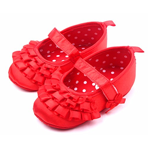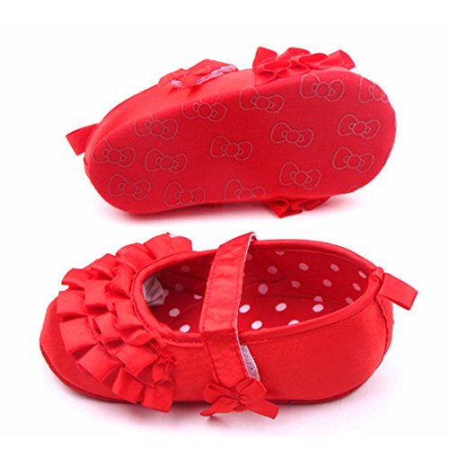 M2cbridge Baby Girl's Bow Dress Shoe Infant Toddler Pre-walker Crib Shoe (6-12 Months, Red silk)