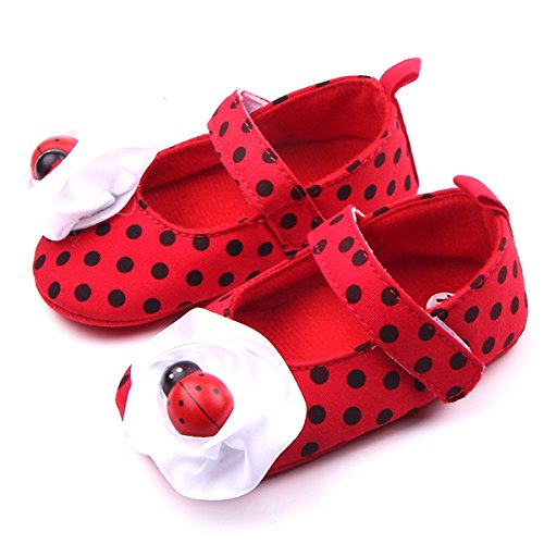 M2cbridge Baby Girl's Bow Dress Shoe Infant Toddler Pre-walker Crib Shoe (12-18 Months, Red ladybug)