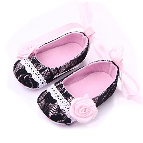 M2cbridge Baby Girl's Bow Dress Shoe Infant Toddler Pre-walker Crib Shoe (12-18 Months, Pink lace)