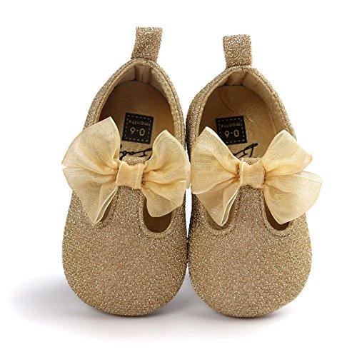 M2cbridge Baby Girl's Bow Dress Shoe Infant Toddler Pre-walker Crib Shoe (6-12 Months, Glitter with bow)