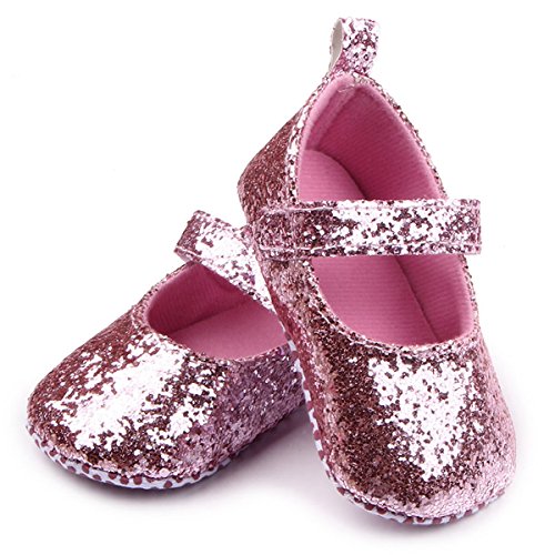 M2cbridge Baby Girl's Bow Dress Shoe Infant Toddler Pre-walker Crib Shoe (6-12 Months, Pink Glitter)