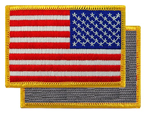 -. Title : American Flag Embroidered Patch Reverse Gold Border w/ VELCRO Brand Fastener