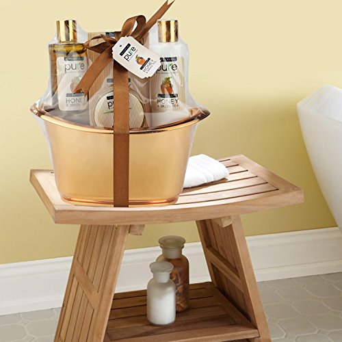 Exquisite Gold Tub: Honey & Green Tea Specialty Collection includes Shower Gel, Body Scrub, Body Lotion, & Bath Salts. All Handmade with Care