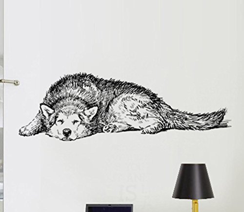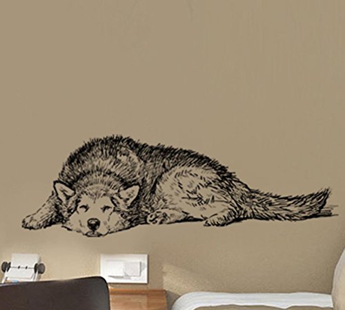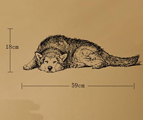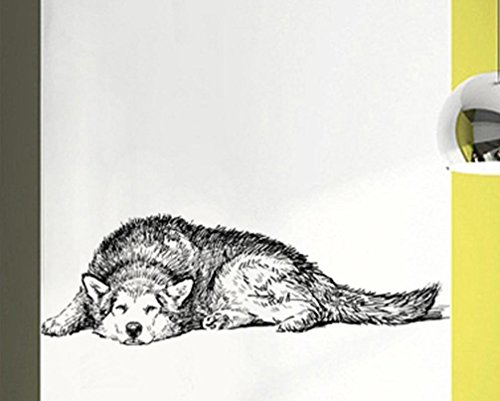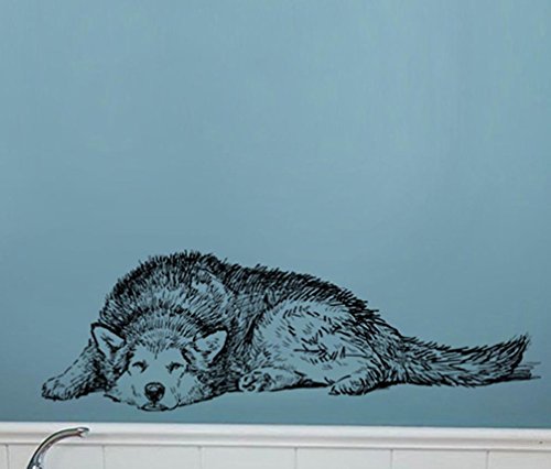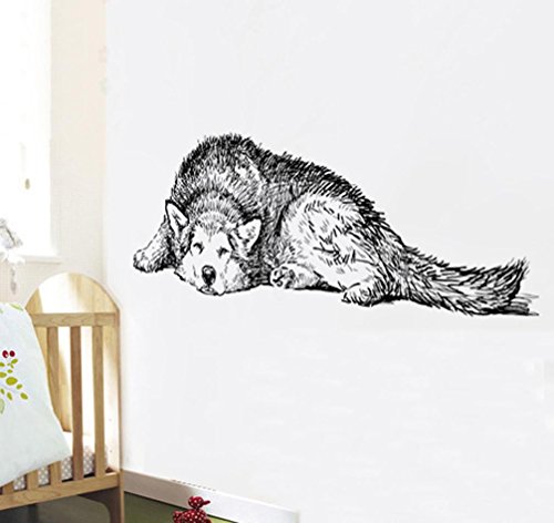 BIBITIME Vinyl Husky Wall Art Dog Decal Sticker for Living Room Porch Back Door Window Nursery Classroom Bedroom Children Kids Room Decor Home Art Mural PVC