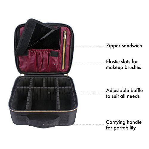 - FULLY ADJUSTABLE DIVIDERS: Comes with removable EVA cased MDF (medium-density fibreboard) allows you to customize the sizes of the compartments so your cosmetics are always neatly organized, separated and secure.