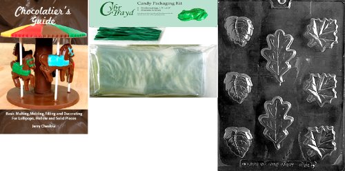 Cybrtrayd MdK50GRBk-F094 Leaf Soap Ass't Fruits and Vegetables Chocolate Candy Mold with Chocolatier's Bundle, Includes 50 Cello Bags, 50 Green Twist Ties and Chocolatier's Guide