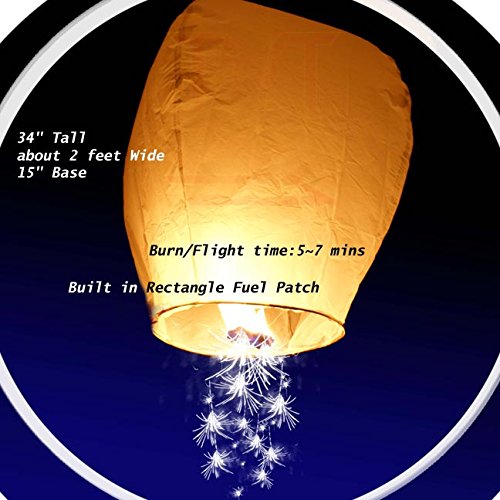 ? You Need: Fast lighting, Star Emitting, Fast warming, Fast ascending robust lanterns that will fly high into the sky embedding a lasting memory forever. ? You Desire: a traditional, authentic, unique shooting star floating paper lantern that makes your special event cherished as a treasured experience. ? You Want: your party supplies from an eco-friendly manufacturer whose prime concern is your safety and happiness. One who understands how important your special events are and tests extensively to ensure your celebration exceeds your expectations. ? You WILL Get: Exactly what you want, need and desire. When it comes to your precious gatherings, Original Sky Lanterns spared no expense to make you the best sky lantern money can buy.