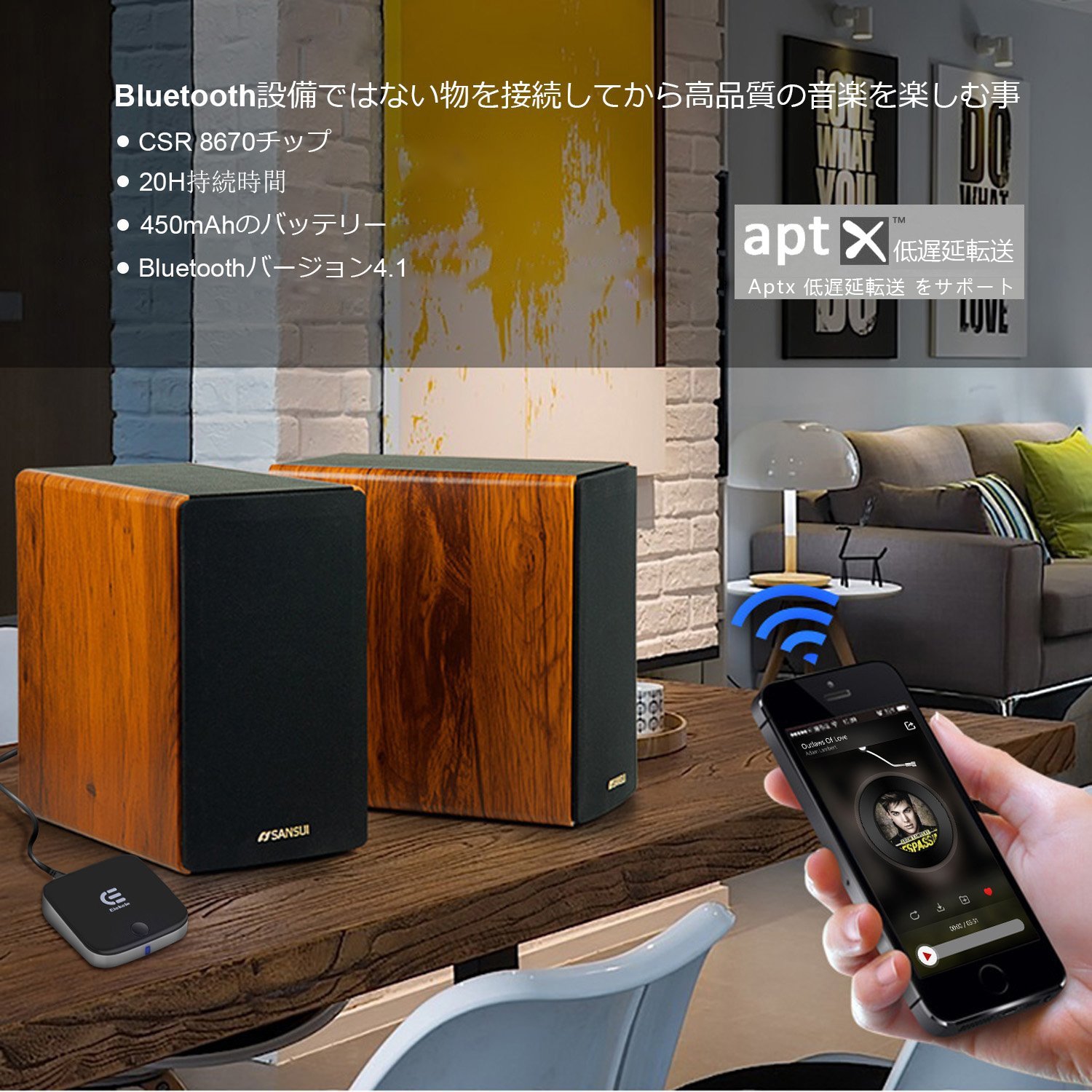 Since it adopts the latest CSR 8670 chipset, it also supports the aptX codec, so you can enjoy high sound quality.