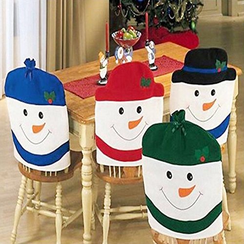 -. Feature : Adorable Design - Set of 4, 4 colors available. Blue, Red, Green, Black. They feature a snowman with huge smile. Cute design to decorate your chair for Christmas holidays / Durable Material - Made from soft material, it feels smooth and comfortable in the hands. Easy to clean and hand wash recommended / Each chair cover measures 22.8"x15.7" . Great for turning a boring old dining room into a jolly Christmas wonderland. Suitable for home, bedroom, room, office, coffee shop / Easy To Install and Take Off - A quick and easy way to dress up your holiday table, easy to install and remove / Great Addition for Christmas Holidays - Have your dining room ready for the season with our wonderfully unique Happy Snowman Chair Covers Set. Bring the happiness and joy of Christmas to your dining room. A must buy for home d¨¦cor
