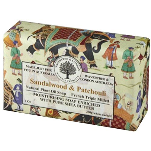 Studio : Australian Natural Soap Publisher : Australian Natural Soap Binding : Misc. Product Description Australian Soapworks Wavertree London 200g Soap Set of 4 - Sandalwood Patchouli is produced in Australia by dedicated artisan soap makers using the traditional French Milling process. The soaps are wrapped in embossed paper and enriched with pure Organic Shea Butter. Sweet, warm, rich sandalwood is highly effective for healing dry skin, soothing rashes and eliminating blemishes. Paired with exotic, sensual patchouli, this bar calms then revitalizes dehydrated skin. Price includes 4 soaps. 0