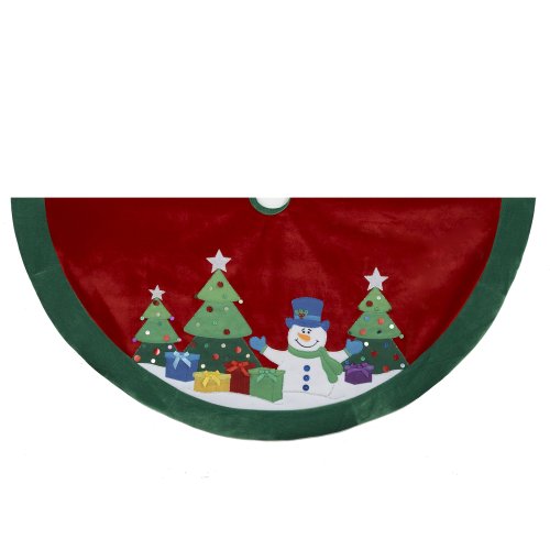Kurt Adler Snowman and Trees Applique and Embroidered Treeskirt, 48-Inch