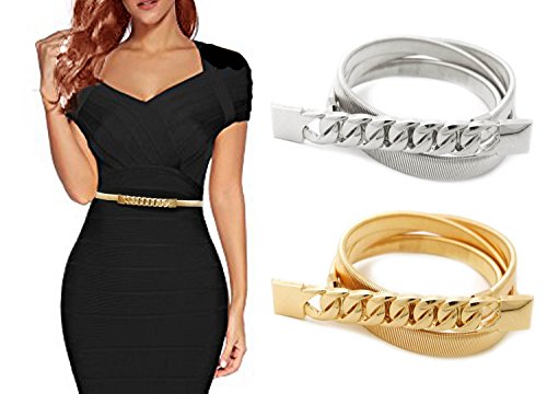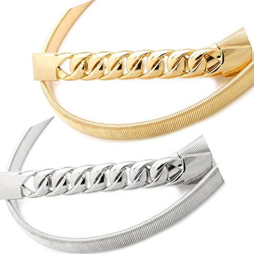 -. Title : Metal Link Chain Plate Buckle Piece Metal Stretch Waist Chain Belt Gold, Silver Tone Set (2 PCS)