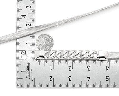-. Feature : Metal Link Chain Plate Buckle Piece Metal Stretch Waist Chain Belt Gold, Silver Tone Set (2 PCS) / Total Length: 30" (Maximum Stretch out up to 50") / Size of Buckle: 3.9" X 0.5" / Adjustable Size / Dress Belly Chain Belt