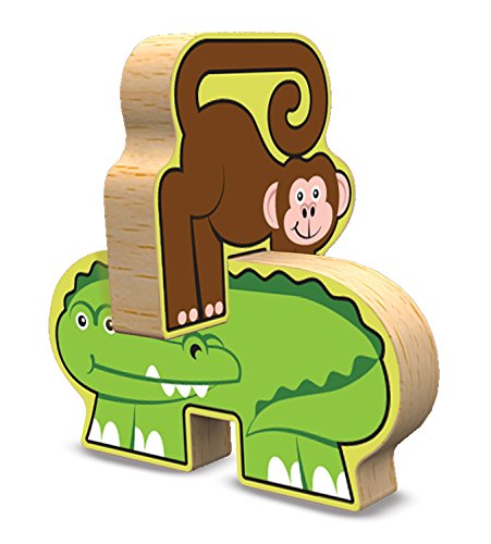 -. Feature : 12-piece set includes 9 colorful animals, matching puzzle board, and 2 stands / Animals featured are giraffe, elephant, hippo, alligator, lion, tiger, flamingo, monkey, and zebra / Easy-grasp, chunky wooden pieces / Helps teach sorting, matching, and counting skills / Encourages problem solving, motor skills, and hand-eye coordination