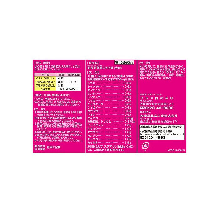 원본상품명: 【第2類品】おなかの脂肪に防風通聖散エキス錠(大峰) 168錠