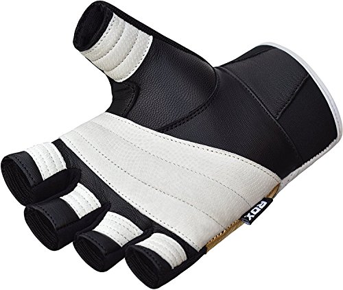 -. Binding : Misc. -. Brand : RDX -. Feature : Double-reinforced stitching throughout design ensures long-life and solid durability. / Quick-EZ Velcro closure strap is made using authentic leather and stretches till the mid-section of hand where the rest is covered with Metallic leather / Inner is made using 4-way stretch material that is breathable and comfy to use. / Half-cut finger design incorporates authentic leather knuckle-side and NUBUCK leather material on the palm-side / Palm incorporates a Patent Pending NUBUCK leather material, providing an efficient grip for better lifting and technique minus the calluses -. IsAutographed : 0 -. IsMemorabilia : 0 -. Label : RDX -. Manufacturer : RDX -. ProductGroup : Sports -. ProductTypeName : SPORTING_GOODS -. Publisher : RDX -. Studio : RDX -. Title : RDX Weight Lifting Gloves Cow Hide Leather Gym Wrist Support Fitness Crossfit Exercise Bodybuilding Training Workout Sport