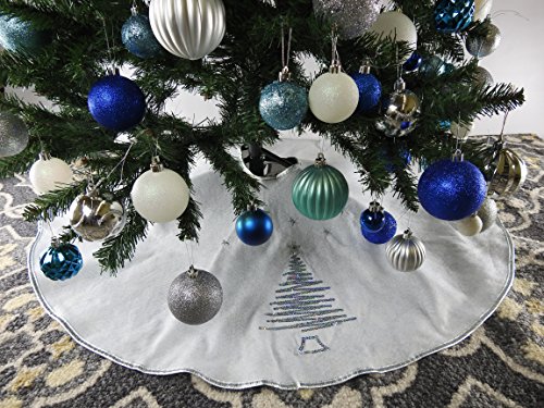 39.5" White Christmas Tree Skirt with Silver Sequin Trim