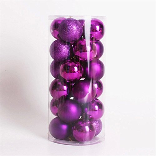 UEETEK 24pcs Shatterproof Glittering Christmas Balls Ornaments For Christmas Tree Holiday Xmas Garden Decorations(Purple)